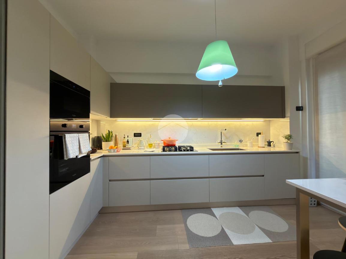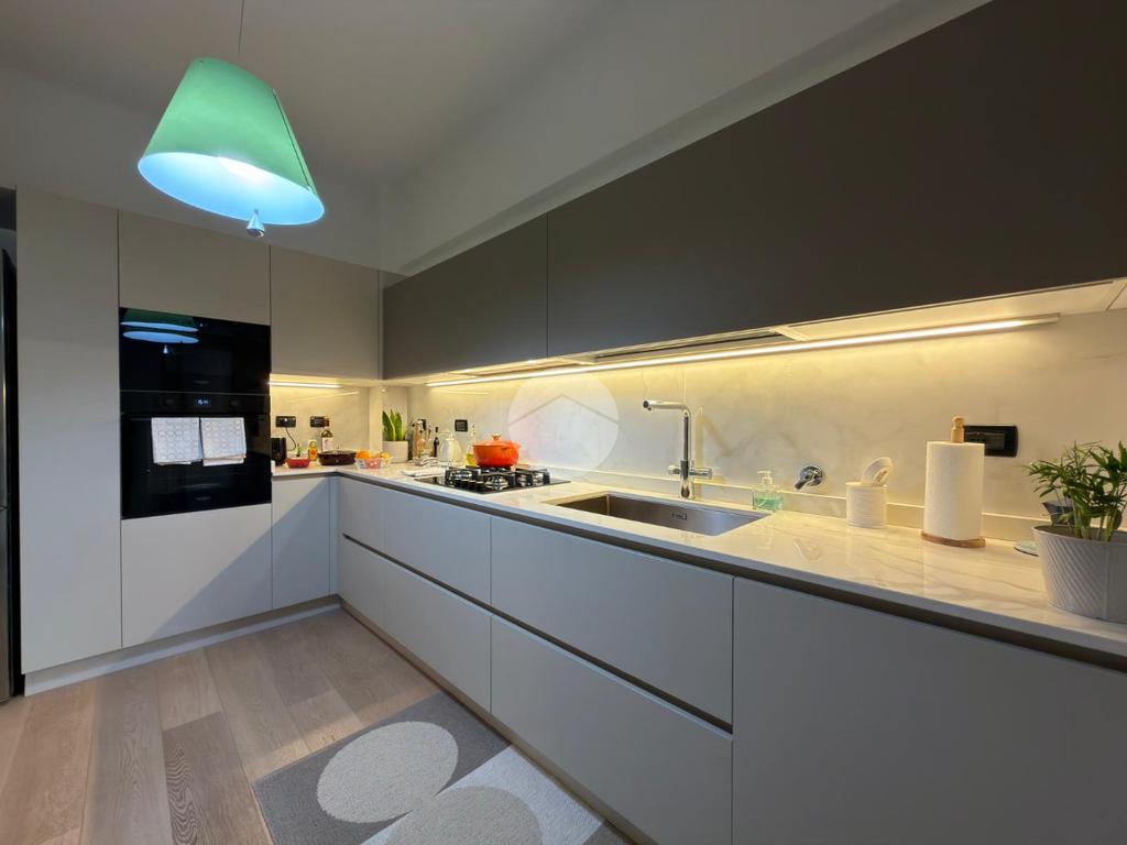 L’immobile si apre su un ingresso che conduce alla zona giorno, composta da un doppio salone con cucina (open space); una pratica porta scorrevole permette, all’occorrenza, di separare la cucina dal soggiorno, mantenendo gli spazi ben organizzati e funzionali.